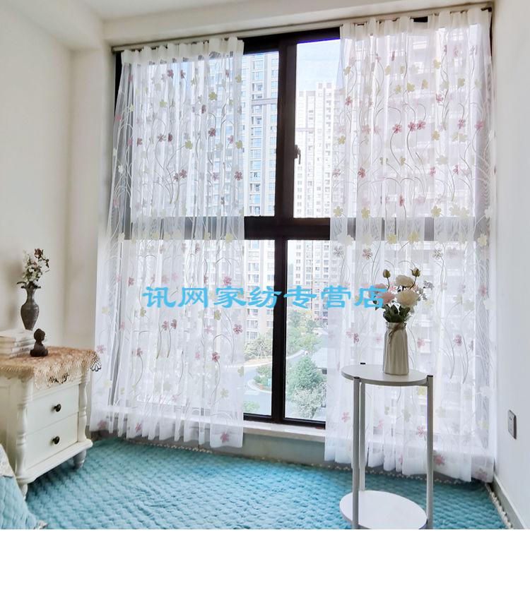 小清新マジックはカーテンを貼り付けて式の家庭の寝室の窓のカーテンの紗を貼って通して遮光します人の自粘式のベランダの紗のカーテンの仕切りを通して窓の紗を切って穴を設けません。白紗のカーテンの二色の花をカスタマイズします。