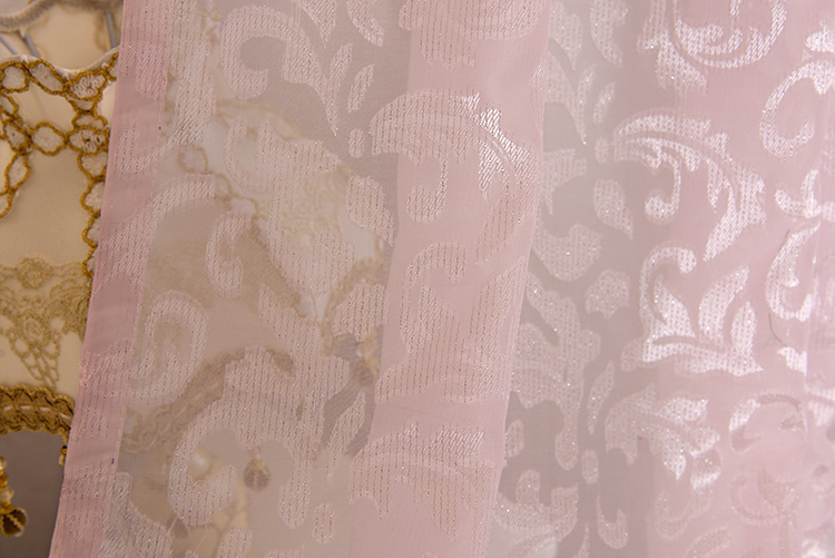 薄桃色のカーテンカットガーゼのカーテンカーテンカーテンのカーテン。寝室のベランダには窓が黄色くて、白い紗のカーテンがかかっています。ガーゼが腐っています。*高さ2.7メートル穴を開けて銀輪を加工します。