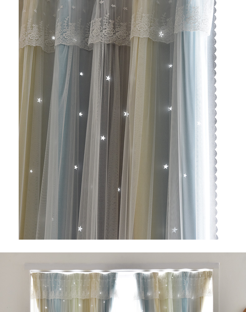 | 商品名称 | 迪派特カーテン2020新型の翻り窓の二重の帯の紗の遮光寝室の少女ネットの赤い震えの音の王女の風のフック式の純色の透明な星の布の紗の一体-米色の幅の1.5*高さの2.7枚の【連結金】 |