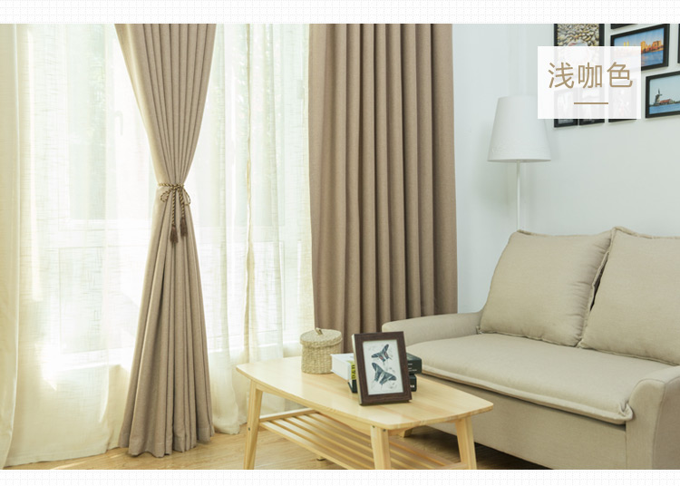 【選りすぐり】八千城カーテン仕上げの布芸厚手仕上げのカーテン日除けカーテンカーテン短カーテンリビングルームの窓の遮光カーテンが簡単に現代純色の麻木綿スタイルのベージュ-フック加工(カスタム)幅1メートル*高さ1.3メートル