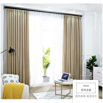 霊水刺繍北欧現代簡単で純色の全遮光亜麻カーテンリビングルームのリビングルームのバルコニーのカーテンの床に置くカーテンの模様は、カーテンのベージュ色のカーテンをカスタマイズしました。