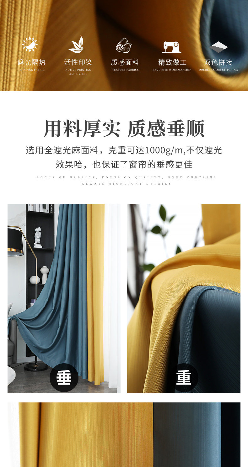 | 商品名称 | 小米生態同項の軽奢北欧高級大気シルク遮光カーテンの純色つなぎ合わせが簡単で現代客間カーテンの完成品の暖色の暖色の暖簾のセットになっています。(レール幅2メートルに適用します。)高さ2.7無料加工 |
