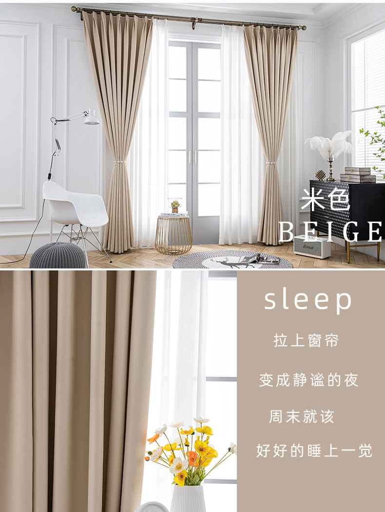 金贵富北欧现代简约全遮光カーテン寝室のリビングルームの窓の部屋の断熱式の日よけ高級カーテンファブリック生特注カーテンのベージュ加工フック(カスタムサイズは幅2.7 mの高さ)ができます。