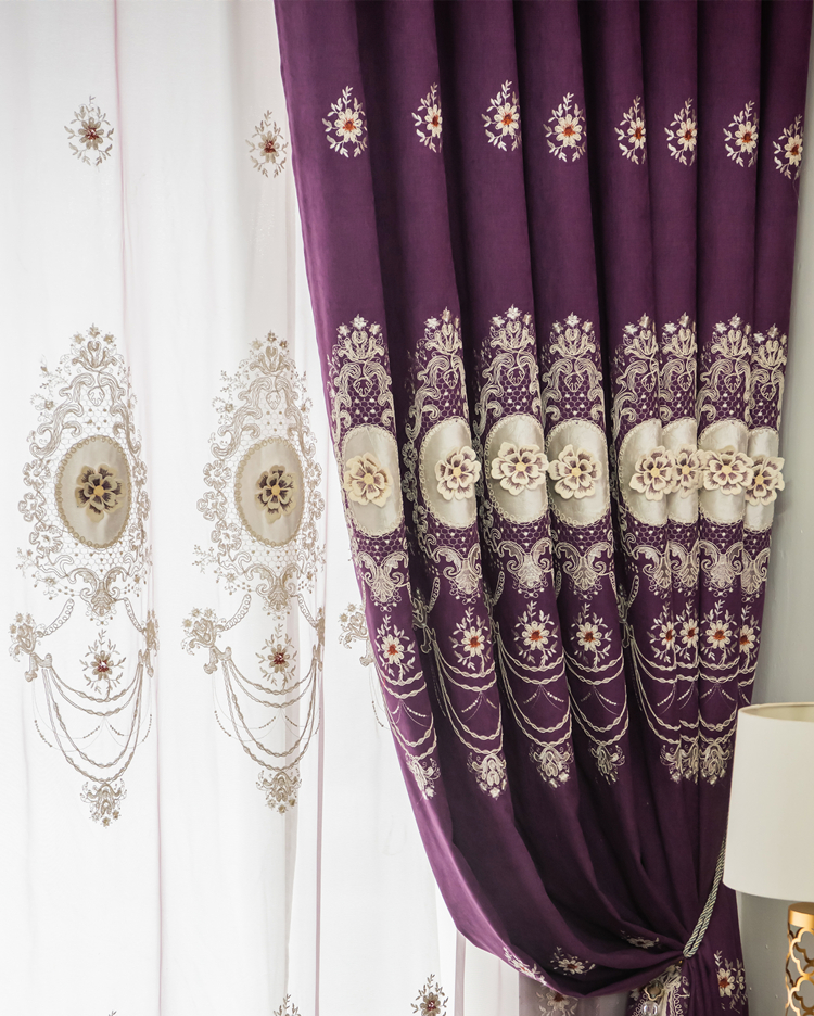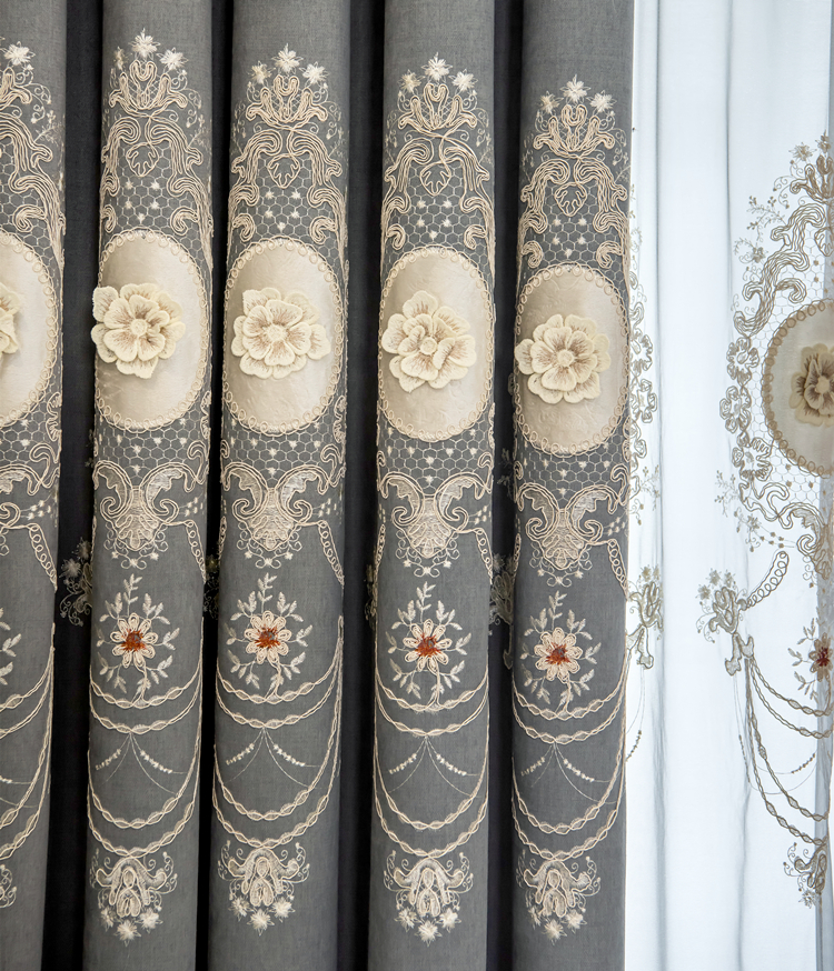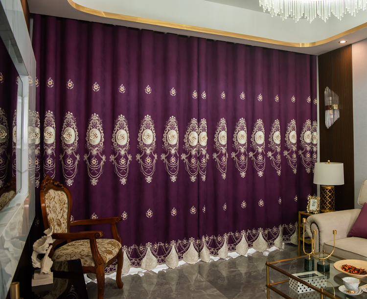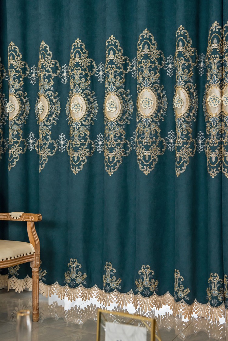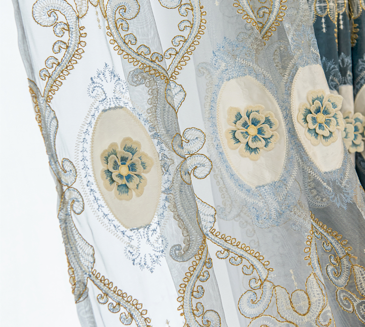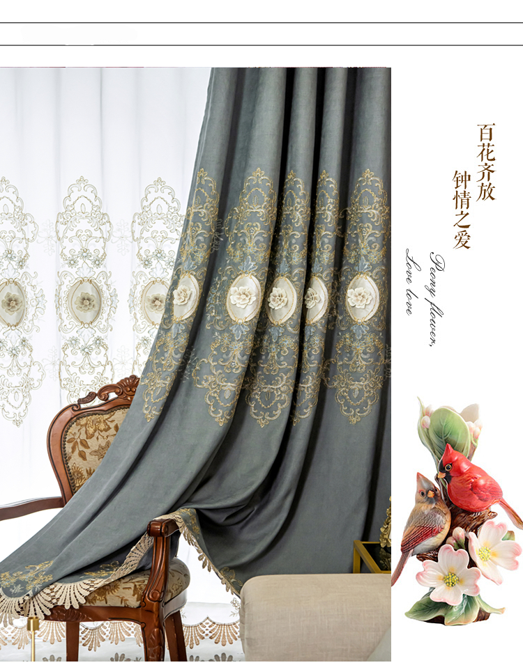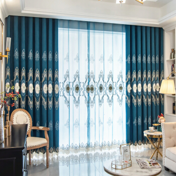 | 商品名称 | 奴詩漫欧式レリーフ刺繍カーテン完成品高級リビングルーム遮光ファブリック生のレレス二階建てオーダーメードバルコニーのカーテンダウン金糸縁:青 |