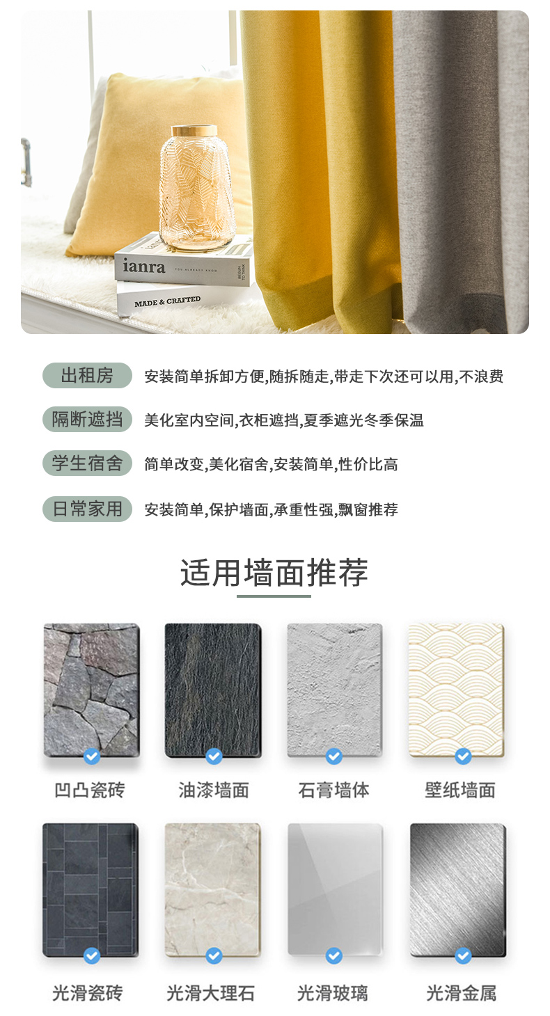 | 商品名称 | 玉澜郡のカーテンは穴あけなしで設置されています。2021年の新型リビングルームの窓付き寝室の全遮光伸縮棒カーテンのセットは純色のベージュ色で、幅2.1-2.6 mのカーテンの高さは2.0 mです。 |