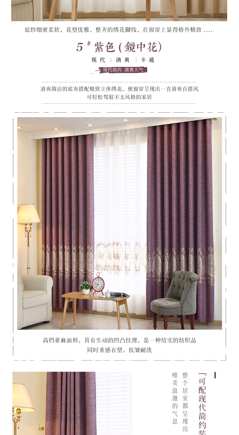 カーテンの小さい2刺繍の亜リネンのヨーロッパ式の純色のカーテンの完成品はカスタマイズして日よけの高級な大気の綿リネンのファブリックの生地のフックをして穴をあけます寝室の応接間のベランダの06塔のリナの米の色は加工費を免除します【カーテンの50元/米、窓のニ...