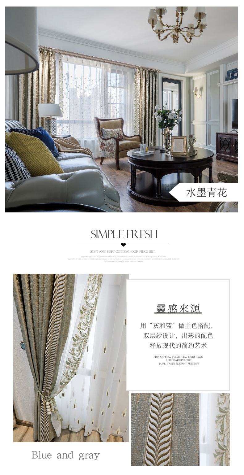 | 商品名称 | 黛恩糸カーテンの完成品は簡単で現代北欧スタイルのアメリカンリビングルームの高精密な遮光布に0.1メートルオーダーメードして布ごとに(加工は無料で、サイドレースは別の計算になります)を撮ります。 |