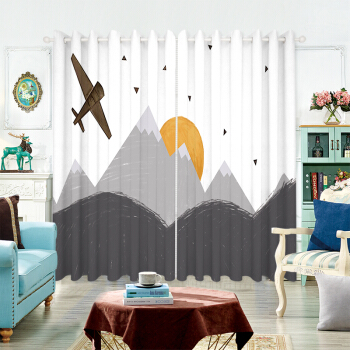 カザニ(ASHANI)半全遮光カーテンの紗簾プリントカーテンをカスタマイズしました。寝室のリビングルームの子供部屋の床につく窓飛行機の太陽幾何学図形抽象イラスト幾何学三角イラストの幅は4メートルです。カーテンを開けるのに適しています。2.0-2.5メートルの窓に適しています。