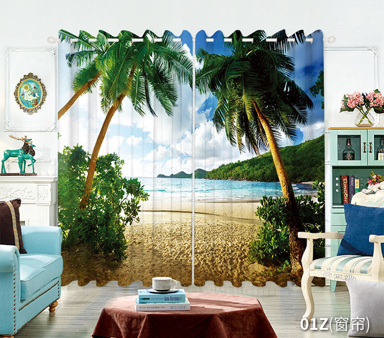 カザニ(ASHANI)半全遮光カーテンカーテンカーテンカーテンカーテンリビングルーム会議オフィス清新な海の青い空と白い雲の海景図Z 0057-海のサザエの海星貝の布-穴あけ幅1メートルの価格/何メートルの撮影が必要ですか?
