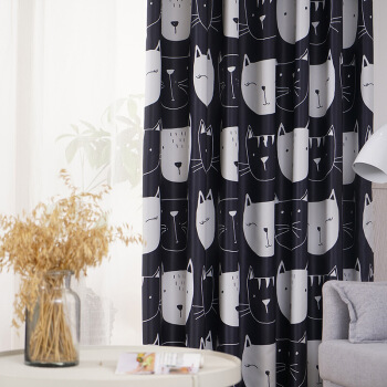 席韻の家紡は現代の漫画の子供部屋のプリントのカーテンの寝室のベランダの遮光のカーテンの黒色の猫を簡約して広く1メートル*高さの2.7メートルの単価(4本の爪のフック)を注文して高くなることができます。