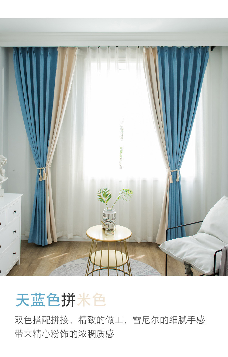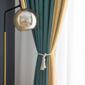 席韻の家紡北欧現代簡単なシェニール色のカーテンモランディ色の遮光寝室のカーテンの布地はカスタマイズできます。墨緑+レモン黄のオーダーメード幅1 m*高さ2.7 mの単価(四本爪のフック)は高さを変えられます。